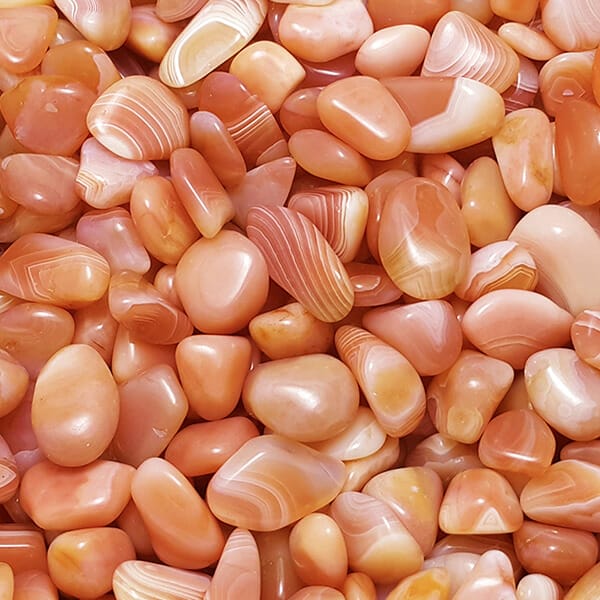 Botswana Apricot Agate is known for its striking banding patterns, which often consist of alternating layers of apricot, cream, gray, and sometimes black. It is named after the country where it is primarily found, Botswana. This type of Apricot Agate is cherished for its harmonious blend of colors and is often used in jewelry and decorative pieces.