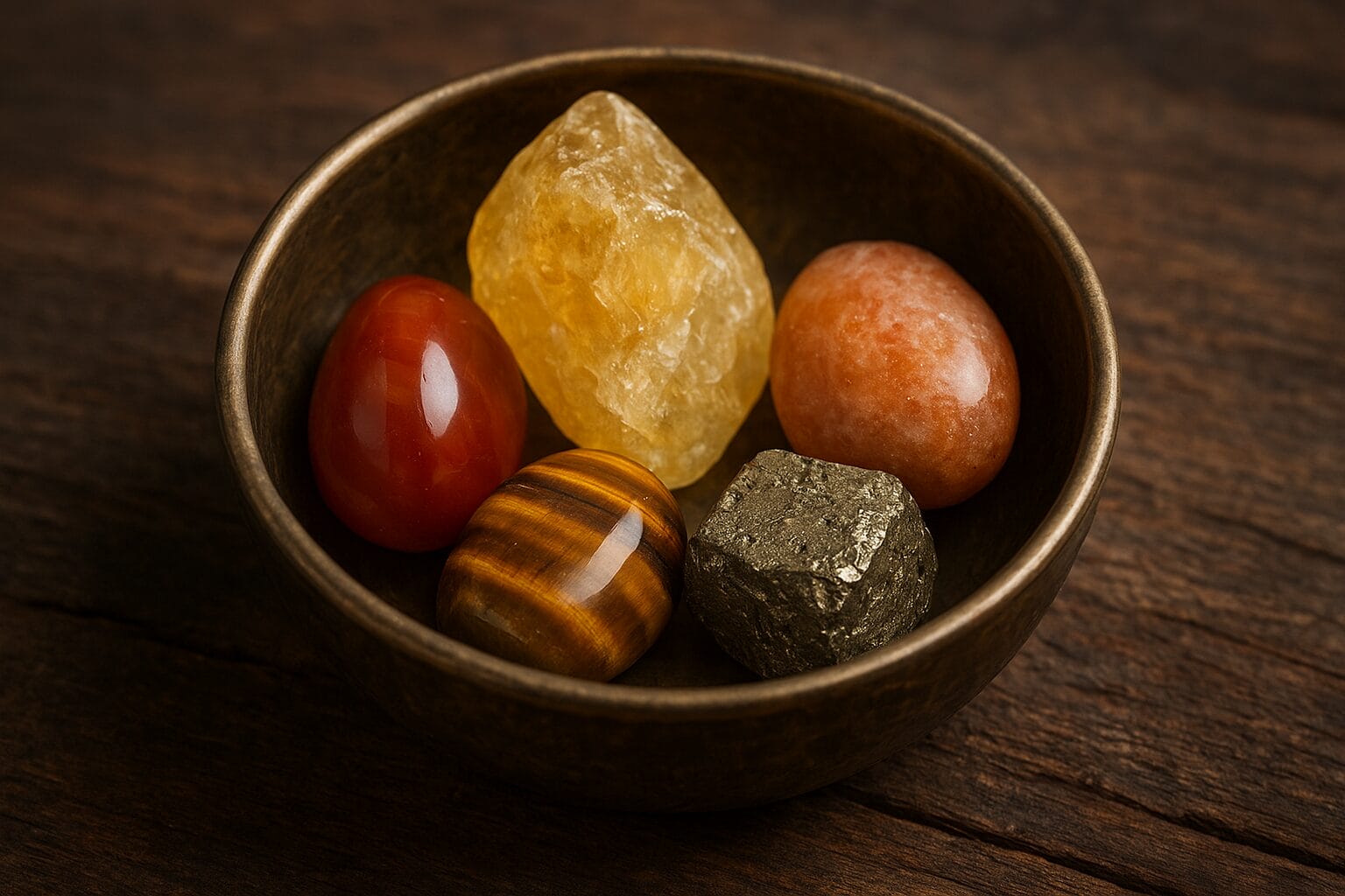 Choose the crystal that resonates with you most, whether it’s the sunny optimism of citrine, the bold courage of carnelian, or the grounded strength of tiger’s eye. Your personal connection to a crystal is more important than following rigid rules about its properties, so trust your intuition.