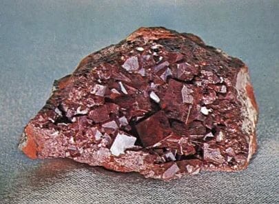 The weathering of copper deposits can lead to the formation of cuprite, among other minerals. Cuprite is a red oxide mineral that often appears as a reddish-brown or deep red crystal. Its formation occurs through the oxidized zone of copper content minerals in the presence of oxygen and water. Because of its copper lodes, cuprite dust is really toxic.