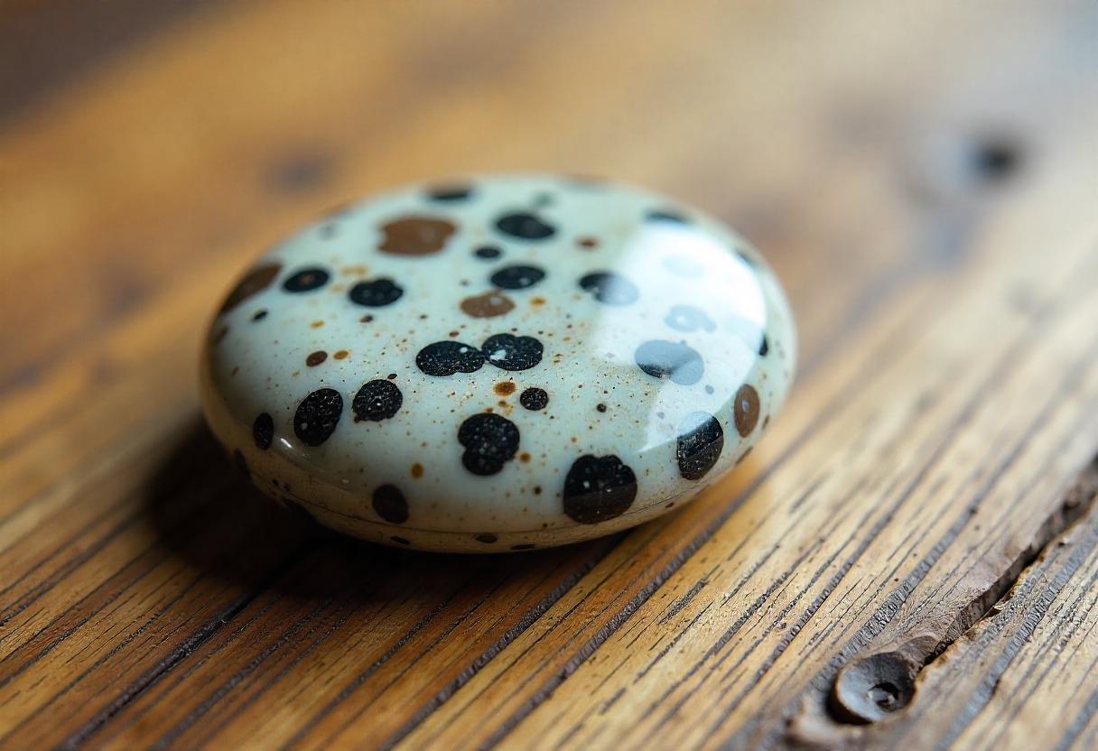 This type of Dalmatian Jasper is characterized by its circular or orb-like patterns that resemble the spots of a Dalmatian dogs.
